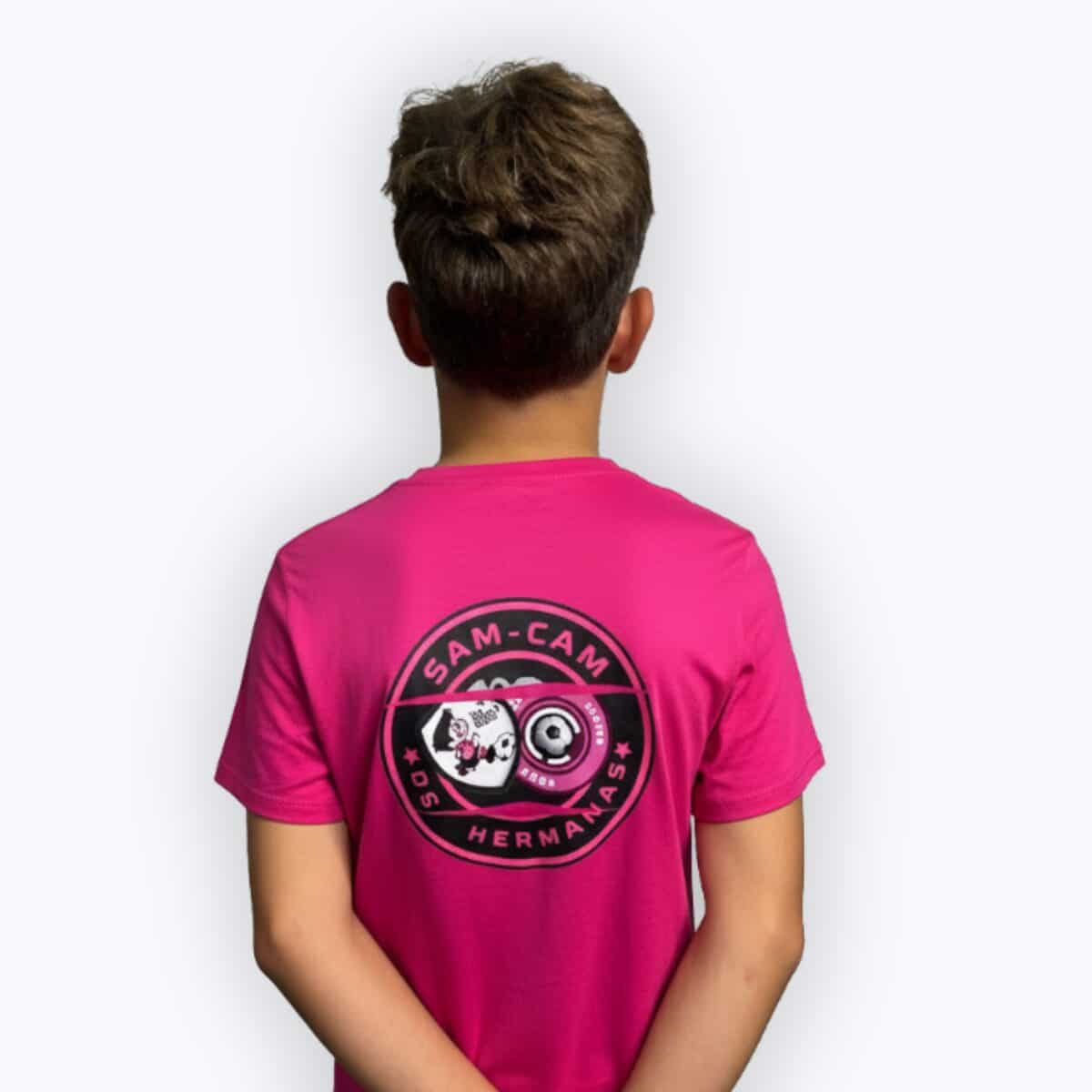 Fabricada en tejido transpirable y resistente, destaca por su color fucsia y el escudo oficial serigrafiado en la espalda, junto al nombre del club en el pecho.