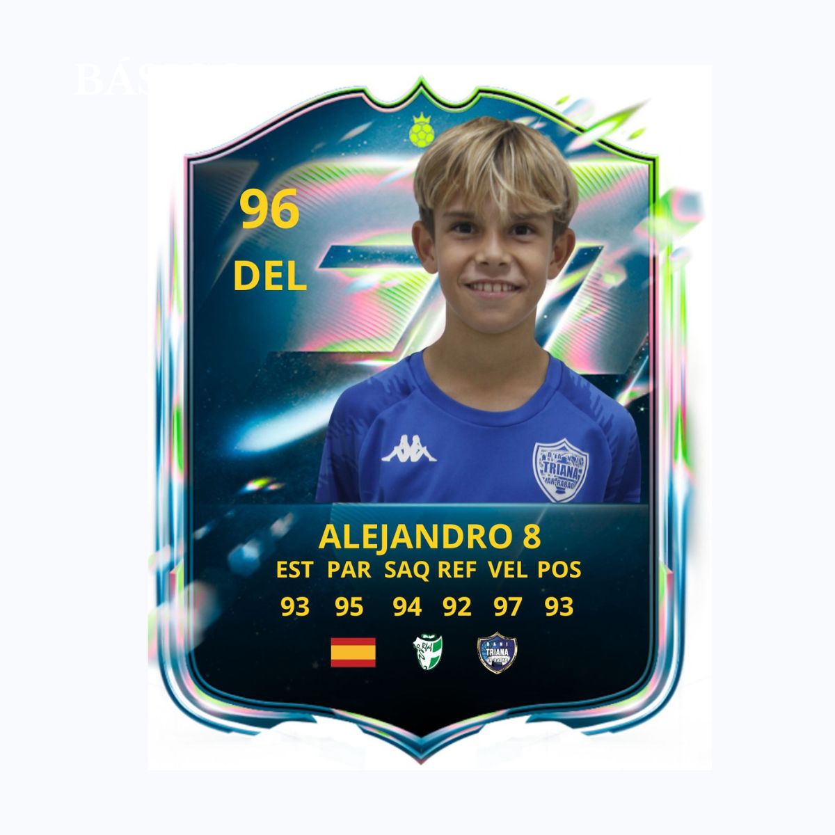 Carta personalizada tipo videojuego del Dani Triana en metracrilato, diseñada con el estilo de las cartas virtuales más populares, ahora en formato físico y totalmente personalizada para cada jugador.