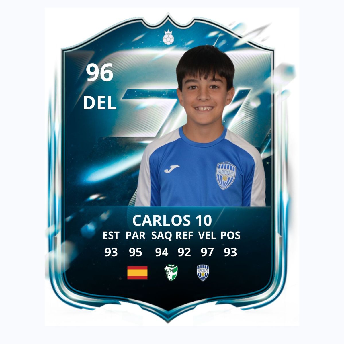 Carta personalizada tipo videojuego del Valencina en metracrilato, diseñada con el estilo de las cartas virtuales más populares, ahora en formato físico y totalmente personalizada para cada jugador.