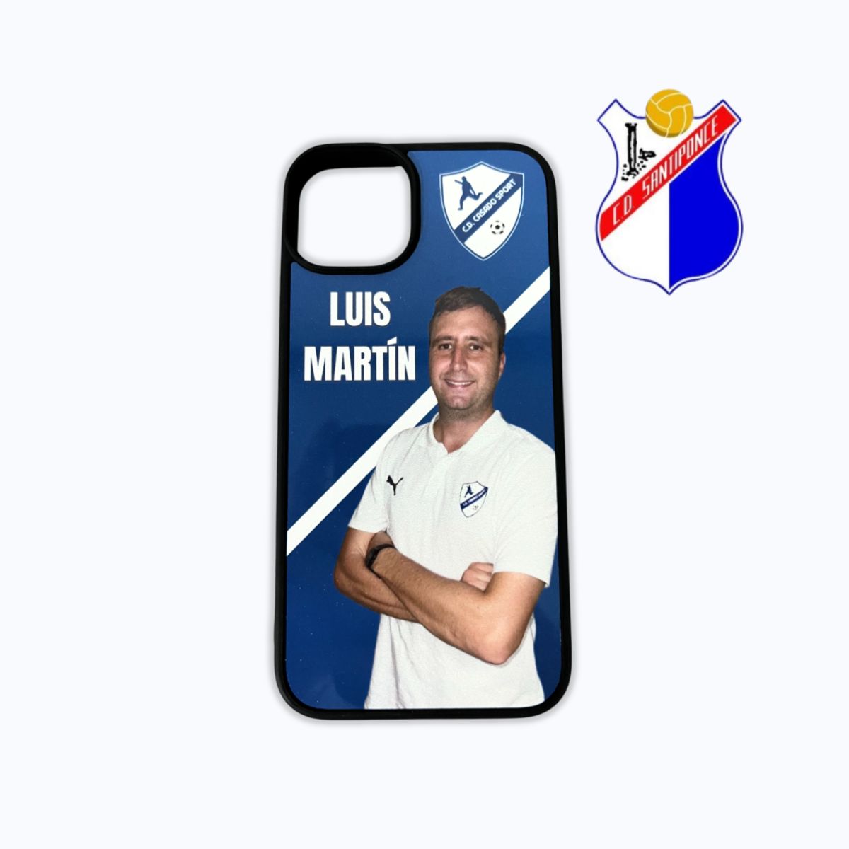 Funda de móvil personalizada del Santiponce, diseñada para que el jugador o familiar lleve siempre el orgullo del club.