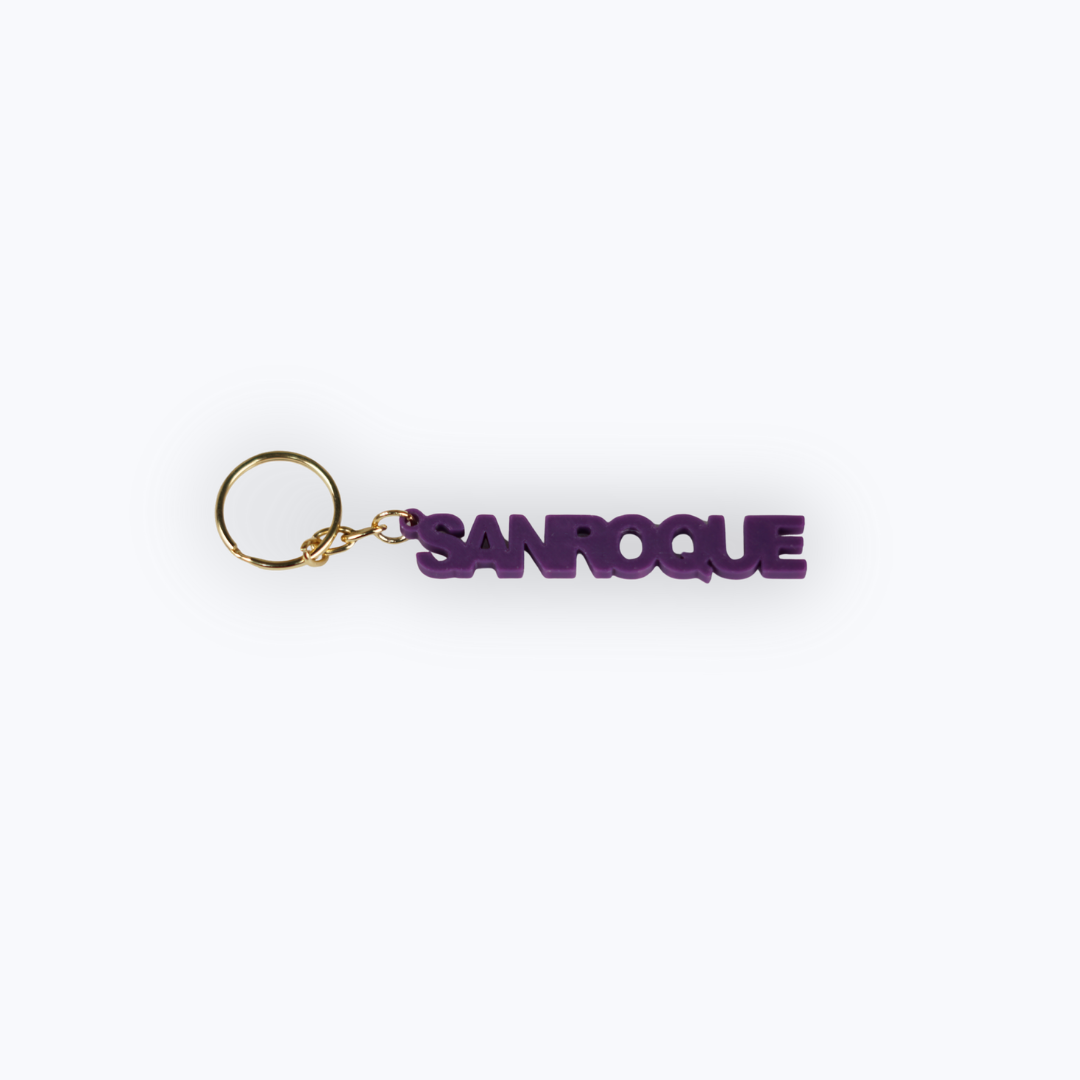 El llavero oficial del San Roque Balompié con la palabra SANROQUE en relieve está disponible en dos colores emblemáticos del club: verde y morado. Fabricado en material resistente y ligero, es el accesorio perfecto para llevar siempre contigo el orgullo del SRB.