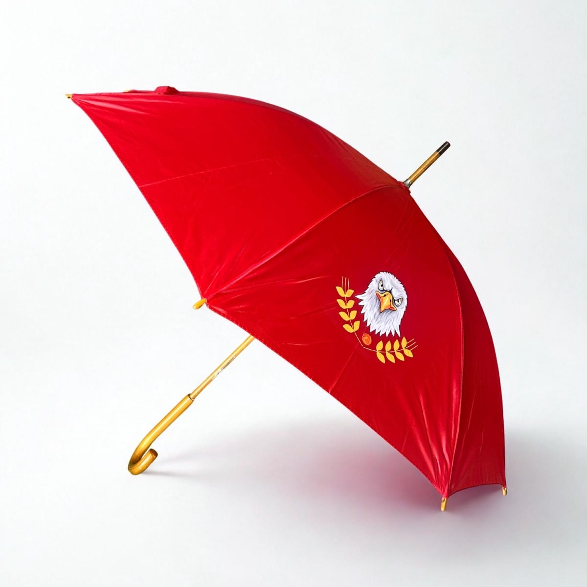Su diseño en un rojo vibrante llama la atención, acompañado del emblemático águila del Vistahermosa CF rodeada de hojas doradas, símbolo de valentía y victoria. El mango tipo bastón aporta comodidad y un toque elegante para poder usarlo en cualquier ocasión.